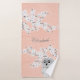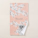Pretty white cherry blossoms and a cute owl on a rose gold glitter background. Customise this girly sparkling towel set with your name.