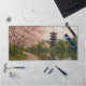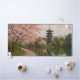 Immerse yourself in the elegance of springtime in Japan with this desk mat featuring a cherry blossom-lined path beside a reflective body of water. A majestic multi-tiered pagoda rises in the background, framed by verdant hills and trees. The overcast sky adds a soft, tranquil mood, making this mat a perfect blend of natural beauty and cultural heritage. Ideal for creating a calming workspace that inspires mindfulness, creativity, and appreciation for timeless landscapes.