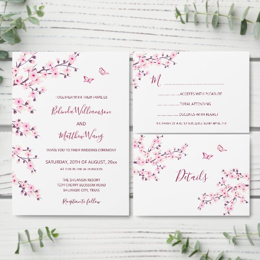 Cherry Blossom Pink White Wedding Details Enclosure Card