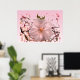 This lovely poster features a single exquisite pale pink cherry blossom with droplets of water from a recent rain bathed in a rosy glowing light. It is set on a pink pastel gradient with a darker pink border. Celebrate the return of spring and warm weather!