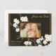 Add your own photo to our custom save the date postcards with elegant white cherry blossoms on a brown background. Easy to use template - just add your photo, and enter the names of the Bride & Groom, along with the wedding date in the space provided.