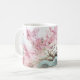 A majestic peacock alongside colourful birds, set against a serene mountain backdrop with delicate cherry blossoms in full bloom.