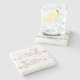 The coasters are gorgeous, a quality feel and heavy weight. They look like a precious archeological find. A rustic stone juxtaposed with a modern floral black and white print. I like the way the print goes slightly imperfect on the cut stone edges giving them a kind-of natural beauty.