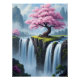 A serene fantasy landscape featuring a blooming cherry blossom tree perched above cascading waterfalls, surrounded by misty mountains and drifting petals. Soft colors and flowing water create a peaceful, dreamlike atmosphere inspired by nature and Japanese aesthetics. Perfect as wall art or a poster, this piece brings calm, balance, and beauty to bedrooms, living spaces, meditation rooms, or creative interiors.