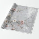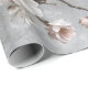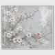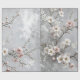 Delicate cherry blossoms in soft pink and white are arranged against a muted, textured background creating a serene and elegant composition
