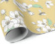 Elegant white cherry blossoms with honey bees flying between the flowers over a satin gold background to wrap baby shower gifts for the mother-to-be, or any greenery theme outdoor event.