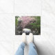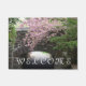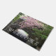 Decorative, welcome doormat that features the photo image of pink, cherry blossoms draping over a stone masonry walkway and footbridge. A lovely, floral design! Use indoors or in covered entryway areas. Select your doormat size.