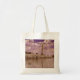 This is an abstract design of the Washington Monument surrounded by cherry blossoms on a cloudy day.