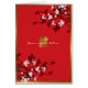 White/Red Cherry Blossoms / Sakura Spring Flowers On A Red Background With Golden Double Happiness Chinese Wedding Invitation Folded Card.