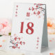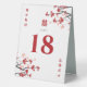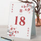 Red/White Cherry Blossoms Or Sakura Spring Flowers And Simple Double Happiness Chinese Wedding Table Number Tent Sign.
