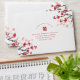 Oriental red /white cherry blossoms or sakura flowers with double happiness symbol. An elegant and romantic asian themed wedding design which is modern and classy.