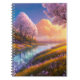 Step into the enchanting landscape captured within this notebook's pages, where a calm river meanders through lush green riverbanks adorned with an array of vibrant flowers. Immerse yourself in the serene ambiance as you envision the tranquil waters gently flowing, reflecting the beauty of the surrounding nature. Let this charming scene evoke a sense of peace and tranquillity, inviting you to embark on a journey of creativity and inspiration within the captivating embrace of this notebook.