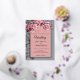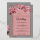 An elegant wedding invitation featuring delicate pink cherry blossoms against a soft silver geometric background. The romantic script font adds a timeless touch, making it perfect for a spring or garden wedding. This design blends modern minimalism with classic floral beauty, ideal for couples seeking a sophisticated yet dreamy aesthetic