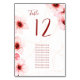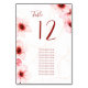 This wedding seating chart table number cards feature watercolor painted cherry blossoms on a blush white marble background. With text boxes to add a list of guest names.