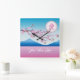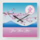 Cherry Blossoms Moon Japanese Sakura Monogram Square Wall Clock