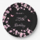 Hot pink butterfly and cute pink cherry blossoms on a black background. With a custom birthday text in an elegant font.