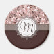 An elegant split design with a top pattern image of delicate pink cherry blossoms over a solid mauve purple bottom, with a textured ribbon and a customisable lace monogram seal in the centre.