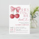 With its charming cherry design tied gracefully in a lush pink bow, this invitation is more than just an announcement; it’s a joyful symbol of the sweet journey ahead. The whimsical yet elegant typography conveys both excitement and timeless sophistication, perfect for gatherings that bring together cherished friends and family.