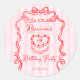 Cherry cake pink coquette bow rainbow border birthday party favour stickers template, whimsical birthday party personalised stickers , handrawn sketch ribbon border cherry cake party personalised thank you favour stickers