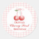 Cherry first birthday Pink Bow Gingham Classic Round Sticker