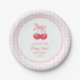 Cherry First Birthday Pink Gingham Girls One Year Paper Plate