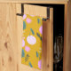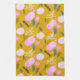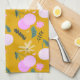 Cherry Floral Greenery Pattern Yellow Pink Tea Towel