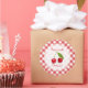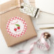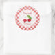 Customisable retro stickers for homemade cherry jam, jelly or preserves jars with fresh cherries on red and white gingham tablecloth pattern.