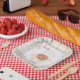 Cherry Little Cutie Pie Pastel Gingham Baby Shower Paper Plate