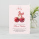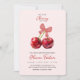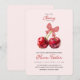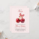 Celebrate your sweet little arrival with this adorable cherry-themed baby shower invitation! Featuring watercolor-style cherries tied with a soft pink bow, this design sets a playful and charming tone for a baby girl shower. The soft blush background and elegant fonts add a fresh, modern feel while keeping things delightfully whimsical.