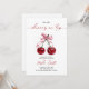 Celebrate the sweetest arrival with the Little Cutie Is On The Way Editable Baby Shower Invitation. This charming design features delightful cherry illustrations paired with a coquette pink bow, creating a playful and modern look. Perfect for a baby girl shower, the vibrant berries theme adds a touch of whimsy and elegance, making it ideal for a summer celebration. Easily customisable, this invitation allows you to edit the text to include all your shower details.