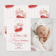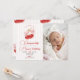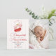 Add your favourite photo to this "Little Cherry" birthday invitation. Includes the charming red cherry and pink bow design, making it a perfect keepsake for a girl's first milestone.