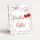 Make your event special with this Cherry Baby Shower with our cute and lovely printable Books and Gifts Sign featuring adorable Coquette Baby Shower theme. Download, personalise, and create lasting memories with this perfect touch for your joyous celebration!