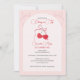 Designed with love and attention to detail, each invitation features a whimsical wavy pattern that adds a playful touch to the overall design. The combination of red cherries and pink bows creates a delightful contrast that captures the essence of fun and sweetness.