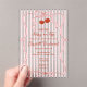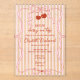 This design features a charming coquette aesthetic, blending classy vintage-inspired pink stripes with delicate hand-drawn bows and a ribbon frame, and vibrant red cherries. The playful yet elegant layout is perfect for a summer fruit-themed shower or a classic garden party.