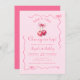 Cherry on Top Pink Handdrawn Birthday with Bow invitation