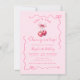 Cherry on Top Pink Handdrawn Birthday with Bow Invitation