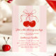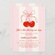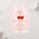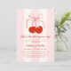 Celebrate love and joy with this charming cherry-themed bridal shower invitation! Featuring a whimsical red cherry illustration tied with a bow and soft pink striped background, this design is perfect for a playful and sweet bridal shower theme. The stylish typography adds a modern touch, making it ideal for trendy celebrations.