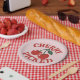 Cherry Picked Trendy Retro Fruit Graphic Party Plates. (the background colour can be changed using the colour picker)