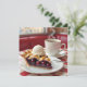 Cute blank notecard with an illustration of cherry pie with vanilla ice cream on top with a warm cup of coffee at the diner.