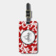 Cherry Red Monogrammed Damask Print Luggage Tag