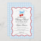 Cherry Sweet Blue Coquette Bow Gingham Baby Shower Invitation