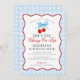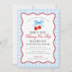 Cherry Sweet Blue Coquette Bow Gingham Birthday Invitation