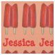 Unique fabric features an original marker illustration of a row of cherry red twin pop popsicles. Simply personalise with your name!