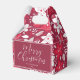 A formal holiday-themed favour box from your family to your guests. It features wild florals in a Christmas style with red, white, and pink colours.