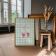 A playful coquette poster featuring watercolor cherries with a pink bow on a green plaid background. Fun and stylish décor for girly rooms, kitchens, or living spaces.