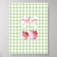Cherry with Pink Bow Green Plaid Coquette Poster