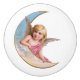 Cherub in pink garment on crescent.