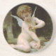 An angel trying to pick a butterfly off his arm. A lovely romantic painting.