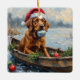 Chesapeake Bay Retriever Christmas Hunting Boat Ceramic Ornament