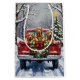 Bring rugged, spirited charm to your holiday season with this handsome Chesapeake Bay Retriever Christmas design! This festive scene features three strong, wavy-coated Chesapeake Bay Retrievers (Chessies) sitting attentively in the back of a classic red pickup truck, nestled in a picturesque snowy winter forest. The vintage truck is adorned with a vibrant Christmas wreath, twinkling with red and gold ornaments and warm, glowing lights. Soft snowflakes gently fall, enhancing the winter wonderland effect. A decorated Christmas tree in the background completes this heartwarming picture, making it an ideal Christmas gift for any Chesapeake Bay Retriever owner, dog lover, or admirer of festive and unique sporting dog art. This design perfectly captures the joyful spirit of the holidays.